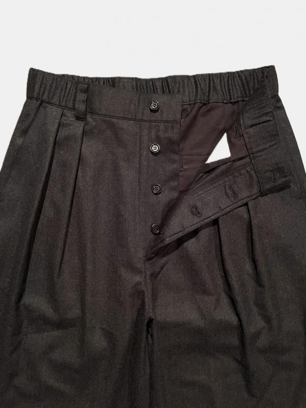 [TOUJOURS] 2 In-pleat Baggy Pants - Super 120's Worsted Wool Flannel Cloth / Charcoal