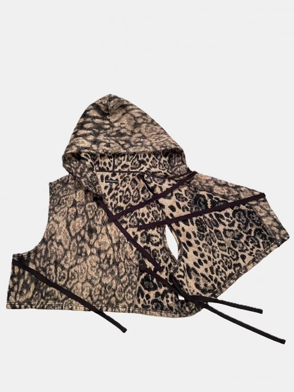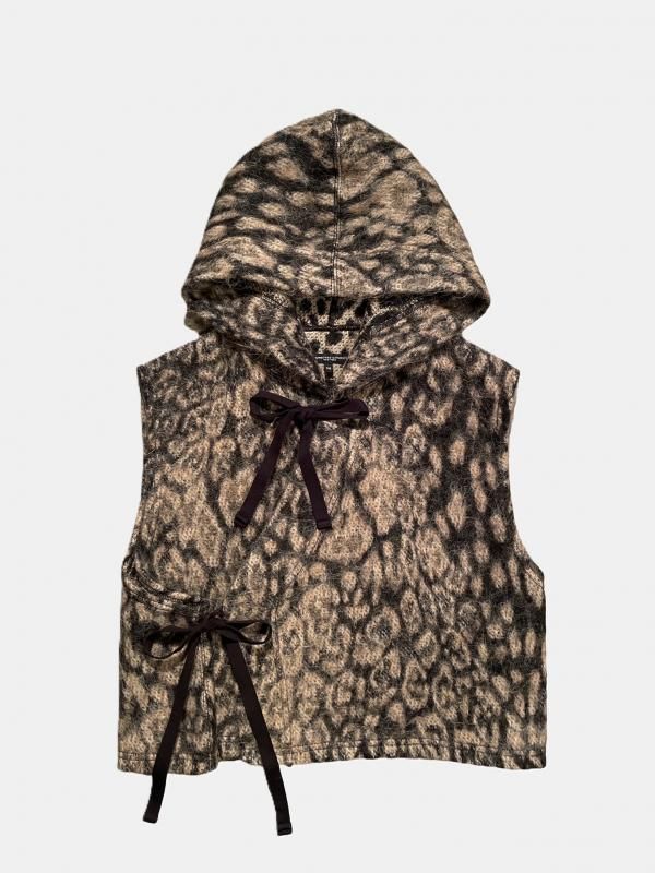 [ENGINEERED GARMENTS] Knit Wrap Vest - Wool Poly Leopard Jacquard / Brown