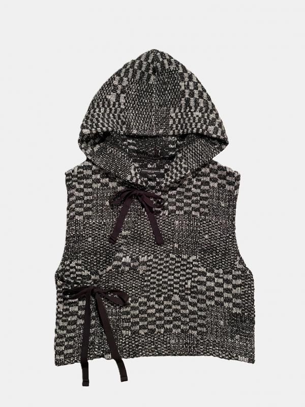 [ENGINEERED GARMENTS] Knit Wrap Vest - Pattern Block Jacquard / Black/White