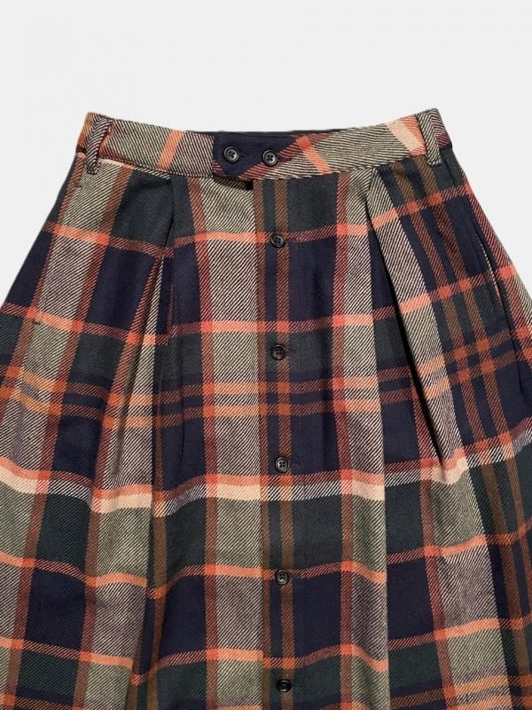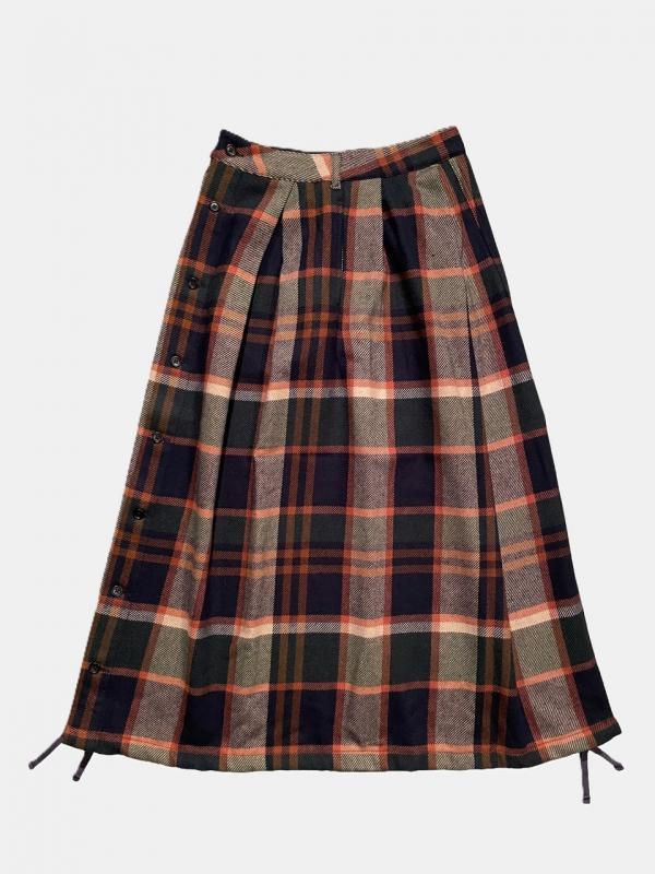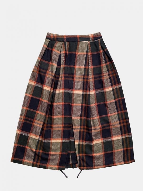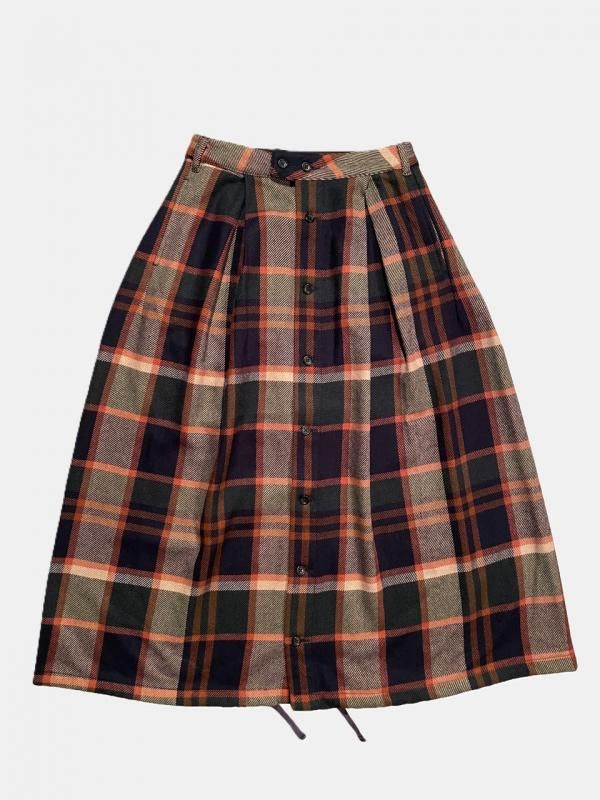 [ENGINEERED GARMENTS WOMEN] Tuck Skirt - Heavy Wool Plaid / Navy/Brown