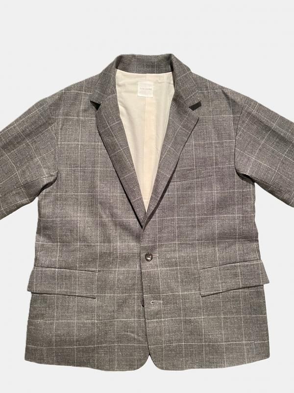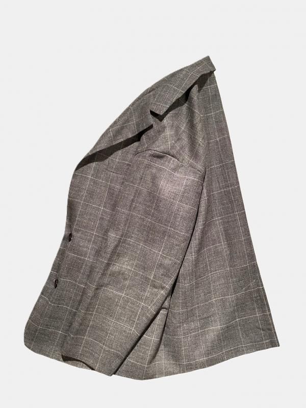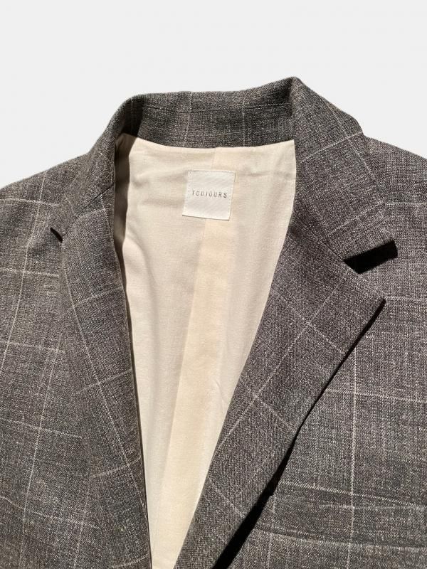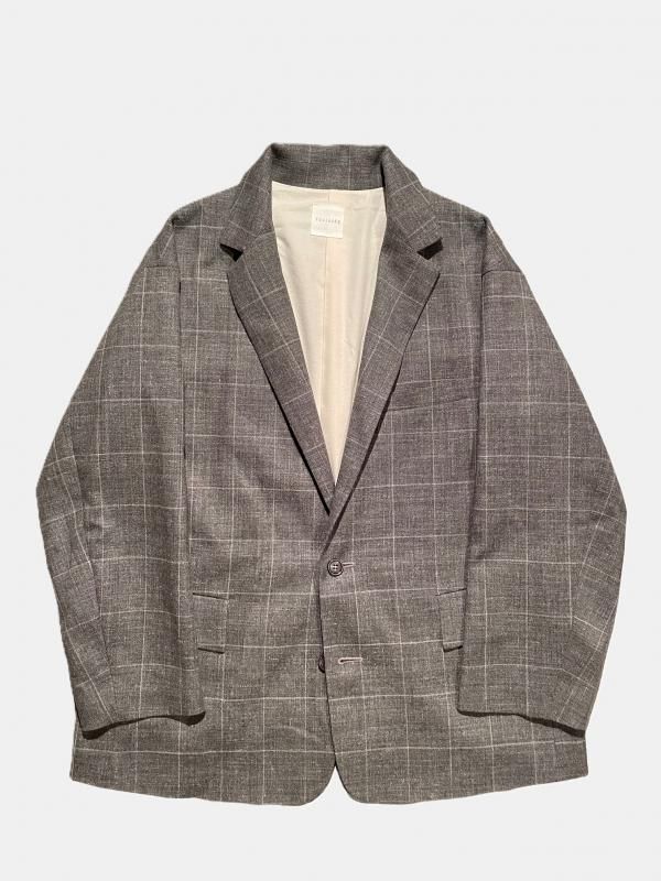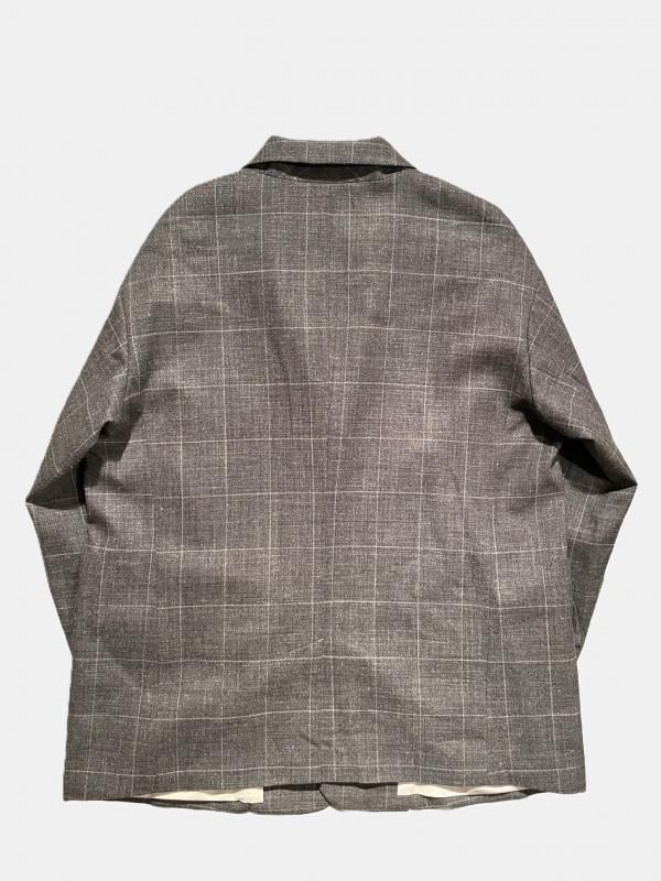[TOUJOURS] Oversize Sack Jacket - Rustic Windowpane Wool/Linen Cloth / Gray