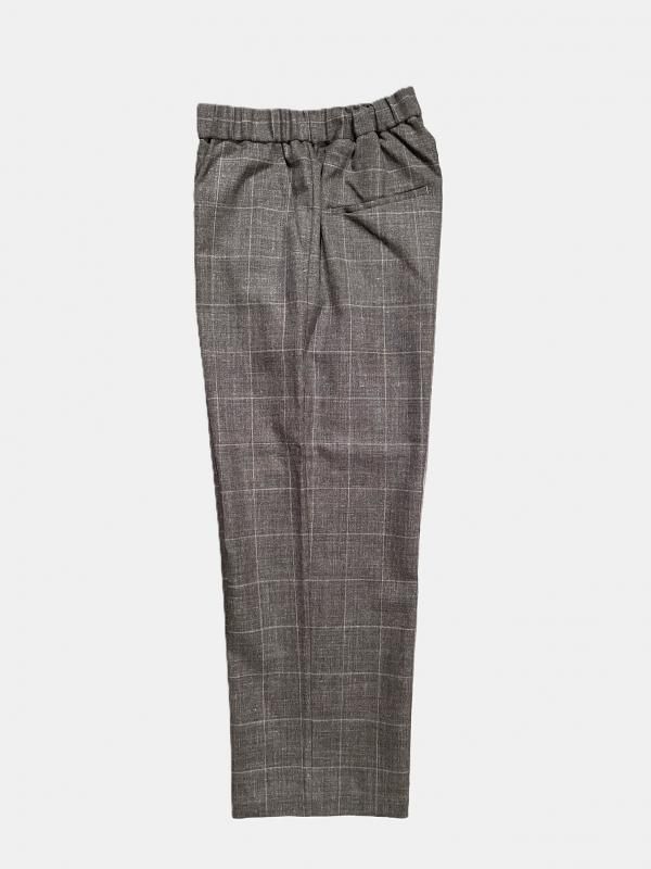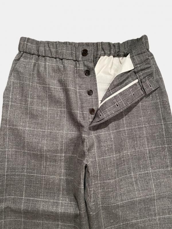 [TOUJOURS] Easy Trousers - Rustic Windowpane Wool/Linen Cloth / Gray