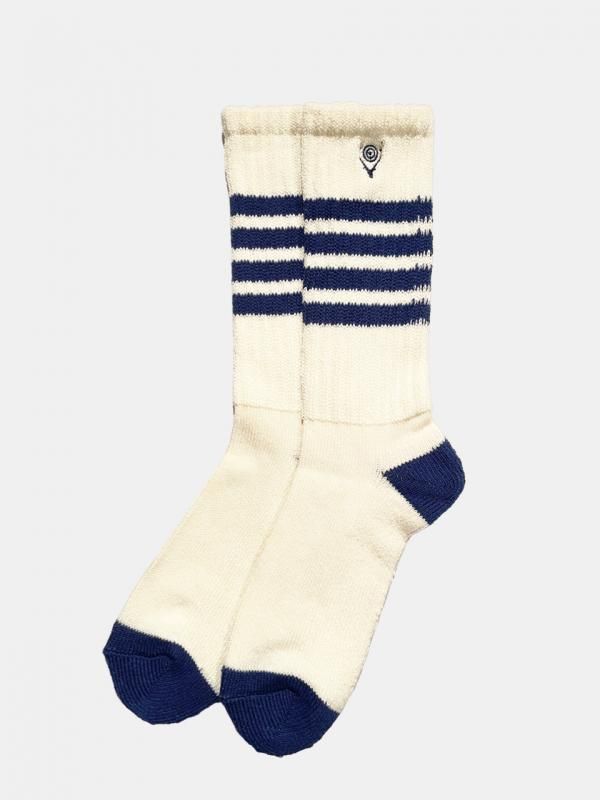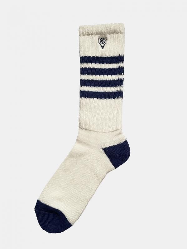 [SOUTH2 WEST8] Socks - 4 Lines / Skull & Target / White/Blue